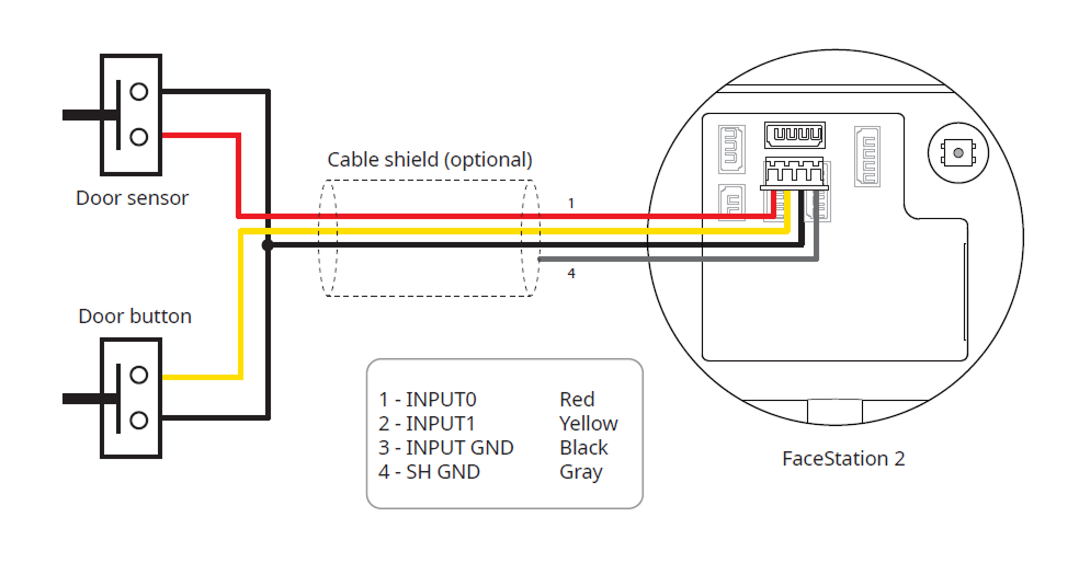 別途I/Oデバイスを接続せずに、製品を直接ドアロック、退出ボタン、ドアセンサーなどに接続します。