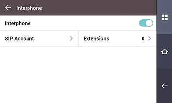 Interphone:インターホンの有効/無効を設定できます。 インターホン設定をオンにすると、SIP AccountとExtensionsを設定できます。