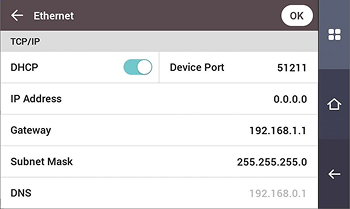 を押し、DHCP設定をオフにすると、IP Address, Gateway, Subnet Mask, DNSをユーザーが変更できます。