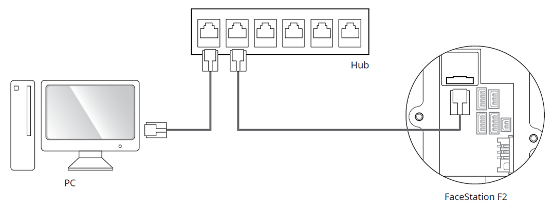 標準タイプのCAT-5ケーブルを使用してハブに接続できます。