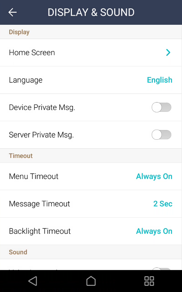 Backlight Timeout:画面のバックライトが消灯するまでの時間(秒)を設定できます。