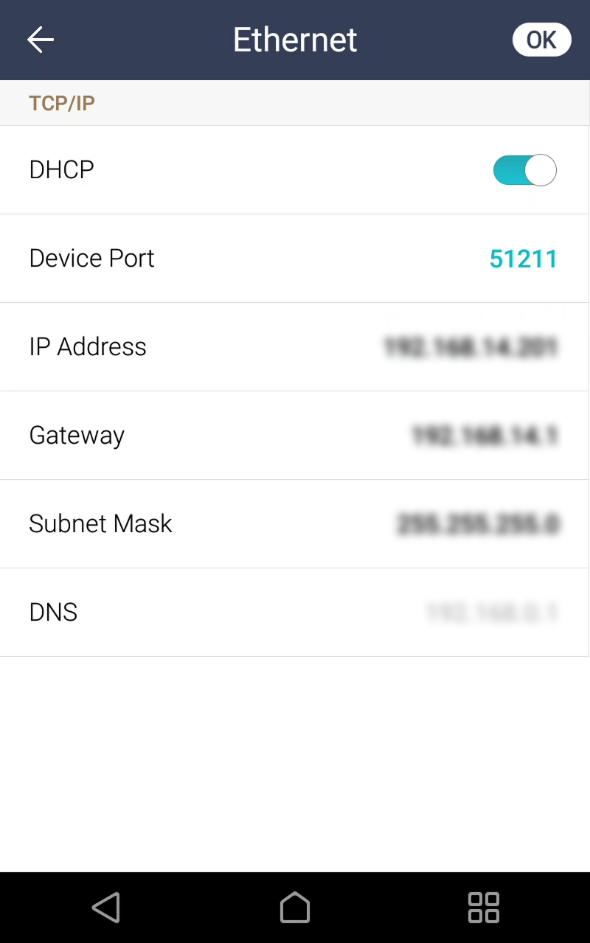 Gateway:デバイスのゲートウェイを確認できます。 編集するにはDHCP設定をオフにします。