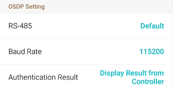 Authentication Result:Intelligent Slaveを使用する場合、他社コントローラーまたはデバイスの認証結果を画面に表示するかどうかを選択できます。 RS-485モードをDefaultまたはSlaveに設定したときに使用できます。