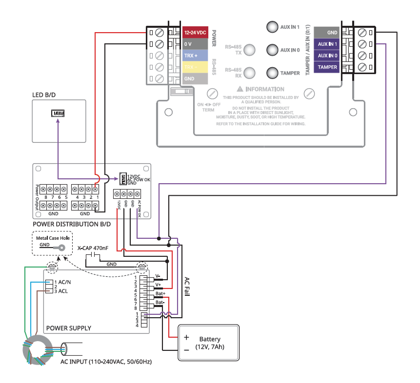 - 出入管理装置と製品に接続する電源は必ず分けて使用してください。
