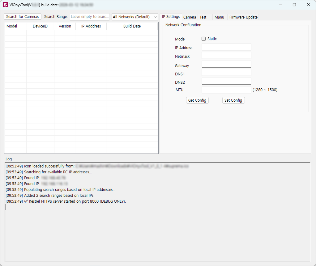 Search for Cameras をクリックしてください。