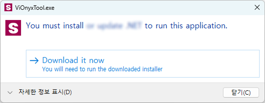 必要なプログラムをインストールした後、ViOnyxTool.exe を再度実行してください。