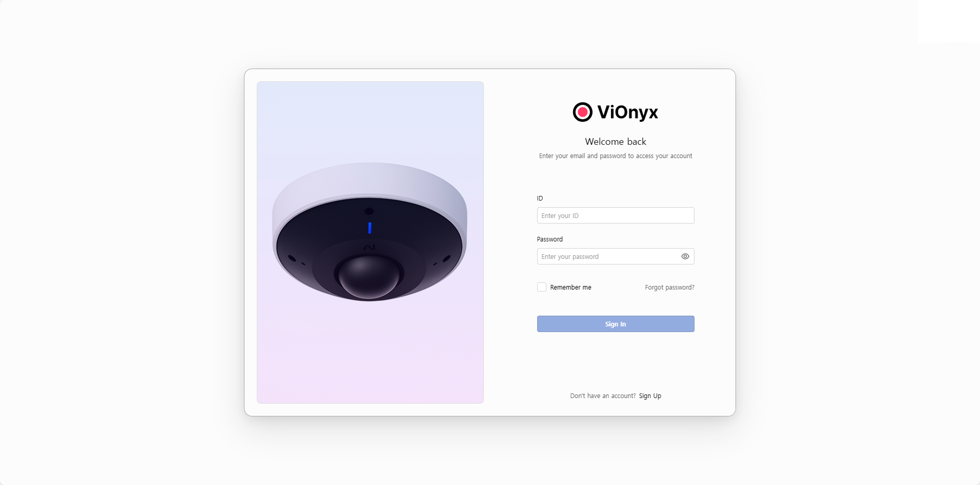 パスワードの設定が完了すると、ログインページへ自動的に移動します。 管理者IDと設定したパスワードを入力して、ViOnyx Web Server に接続してください。