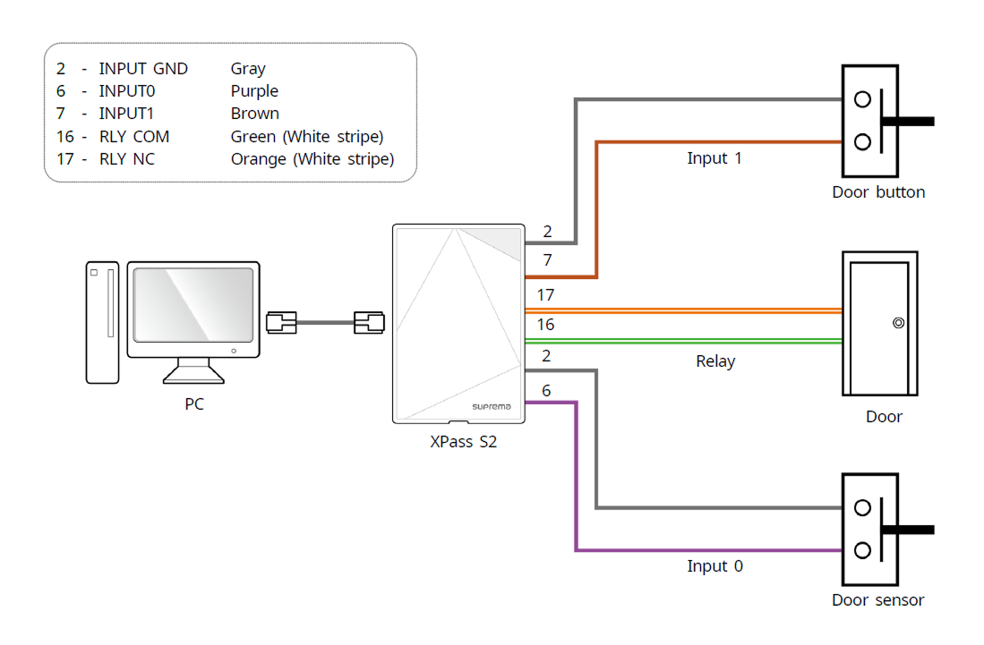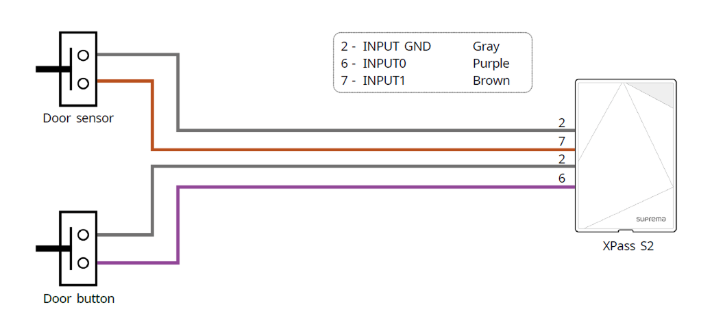 別途I/Oデバイスを接続せずに、製品を直接ドアロック、退出ボタン、ドアセンサーなどに接続します。