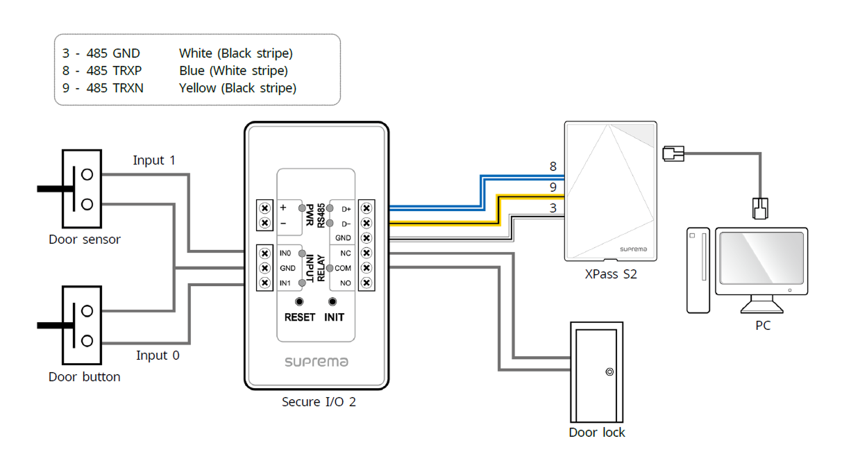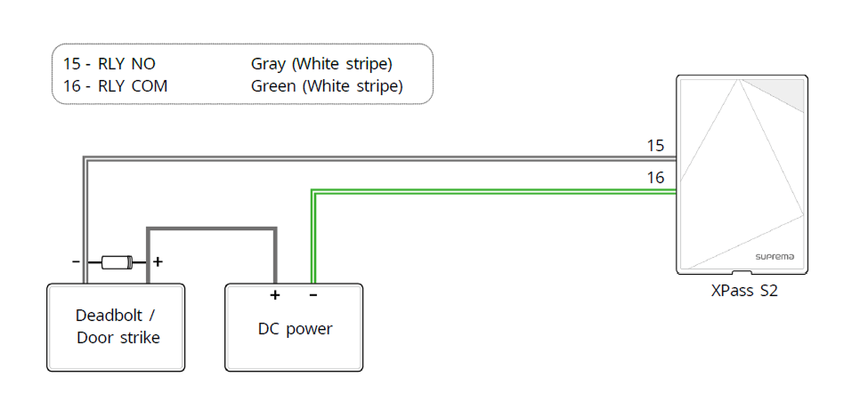 Suprema のインテリジェントデバイスには、利便性向上のためにコントローラーを介さずスタンドアロンで接続し、扉を直接開閉できるリレーが内蔵されています。 しかし、より高いセキュリティが求められる入退室管理アプリケーションでは、扉のロック解除を引き起こす可能性のある改ざん攻撃を防ぐため、デバイス内蔵のリレーを使用しないことを推奨します。 このようなアプリケーションでは、ロック制御用に扉内部の安全な位置に設置した Suprema Secure I/O 2、DM-20、CoreStation などの別体リレー装置の使用を推奨します。