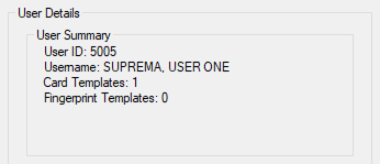 After the Fingerprint has been registered, you can see or delete the credential by double clicking the Fingerprint Templates under User Summary: