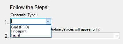When you select the type of credential, the Integration can classify the devices according to their capabilities, hence showing you only those devices capable of handling the credential type you selected. For example: