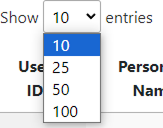 That is, to select all users in the current page, that will depend on whether you have set the interface to show 10, 25, 50 or 100 entries at a time as displayed in the following image: