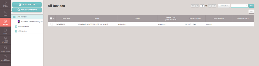 To connect devices to the system go to the device panel and press the SEARCH DEVICE button.