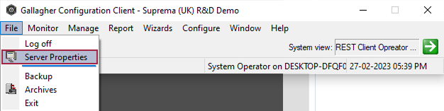Open Gallagher Command Centre, set the Logon name as a system, and press the OK button.