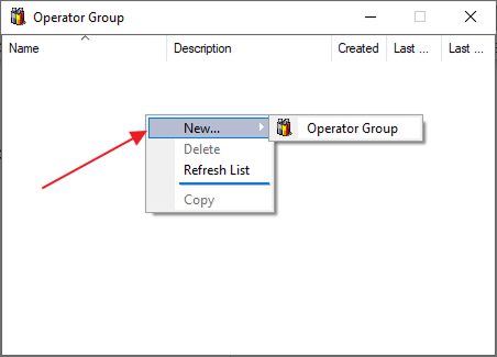 The Operator Group window will open, press right-click and select New → Operator Group.
