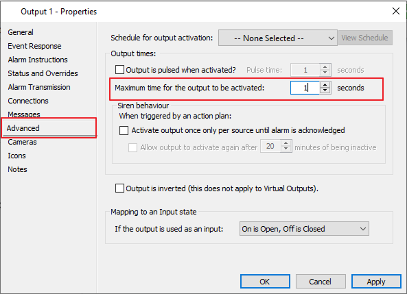 Now click on Advance on the left side set 1 second in the Output times option and press Apply and OK.