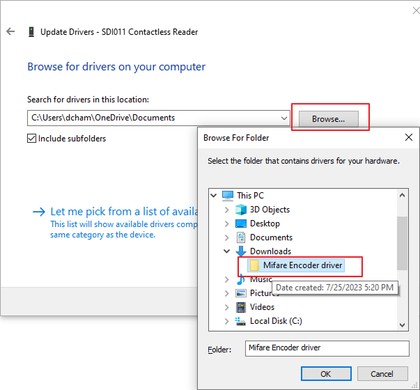 Now we have to update the Contactless Reader driver again with the same file. After you will see the new smart card driver will be available.
