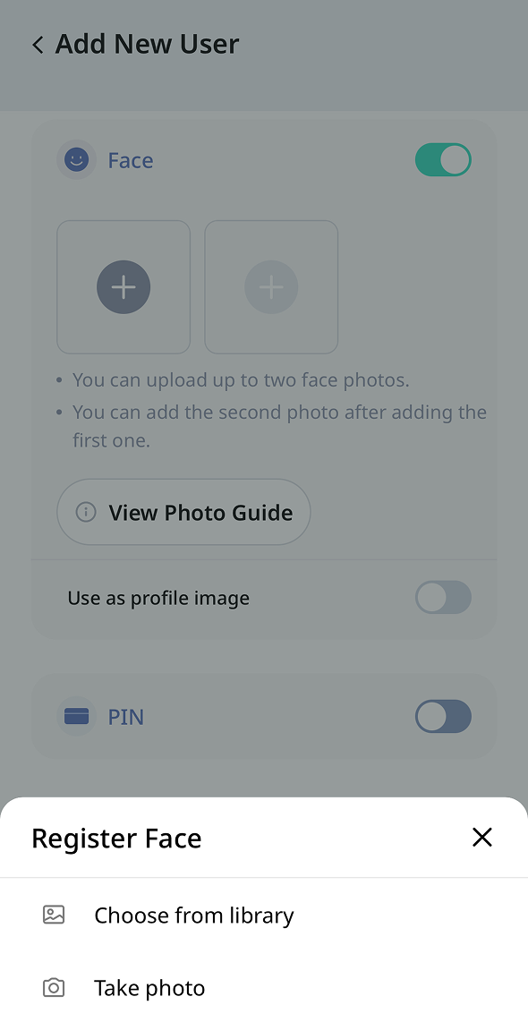 デバイスに登録: 登録済みのデバイスを使用して顔画像を登録できます。