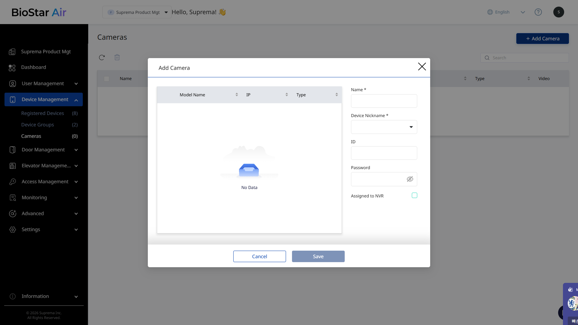BioStar Air는 자동으로 네트워크에서 카메라를 검색합니다.
