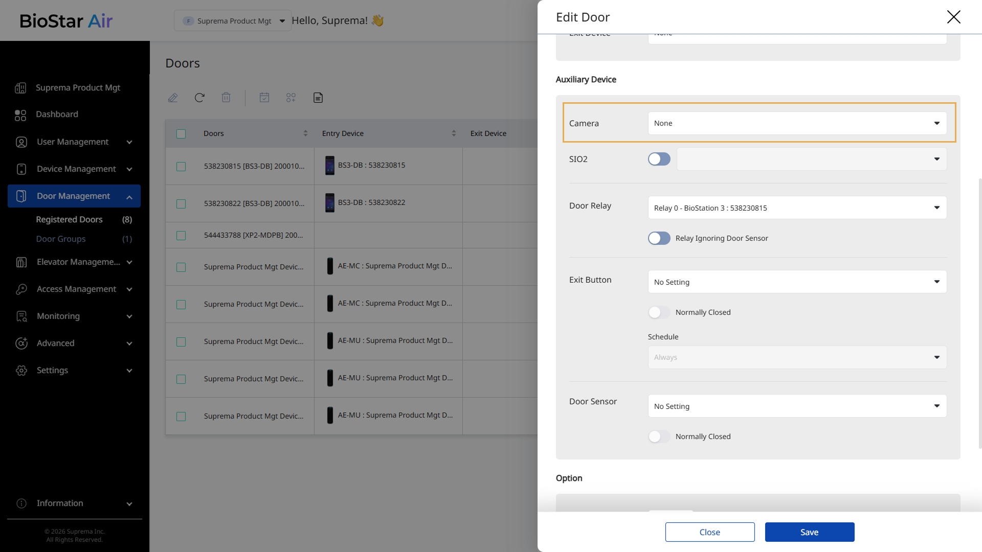 추가한 카메라를 출입문과 연결하여 출입 이벤트와 관련 영상을 연동할 수 있습니다.