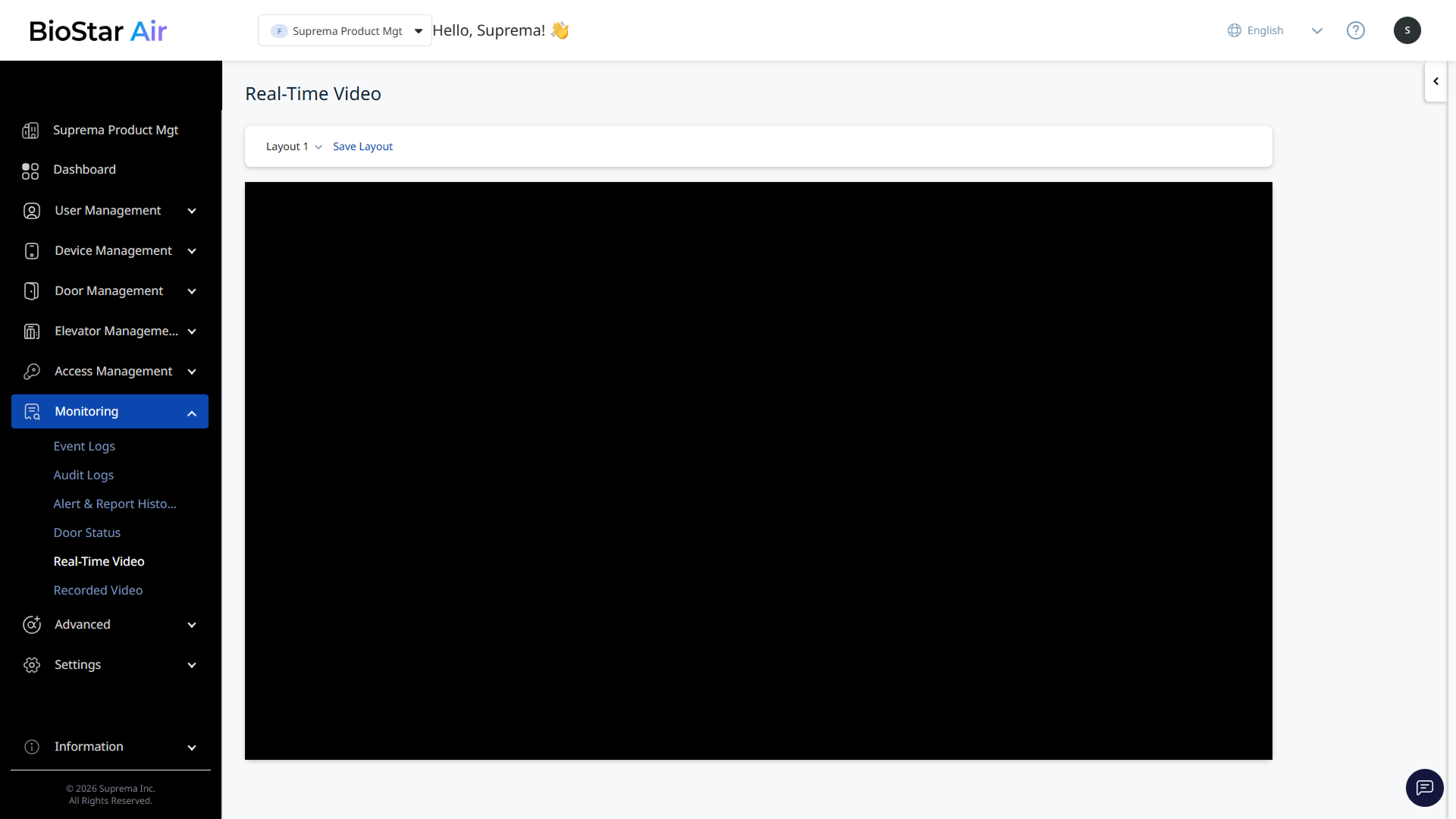 추가한 카메라의 영상을 실시간으로 볼 수 있습니다. 화면 왼쪽 사이드바에서 Monitoring → Real-Time Video를 클릭하세요.