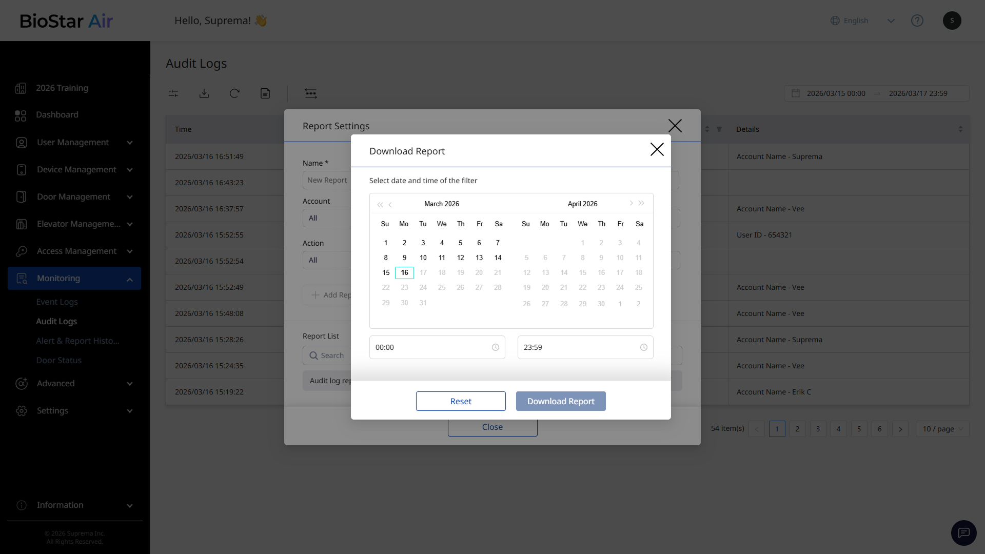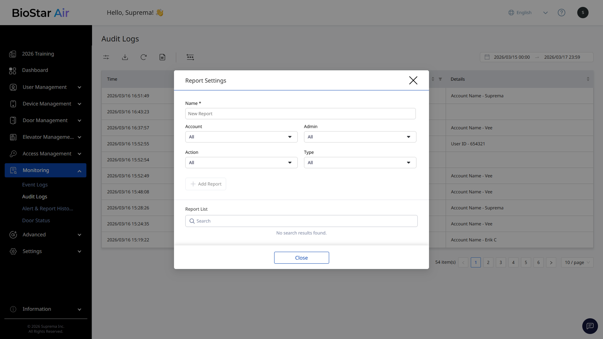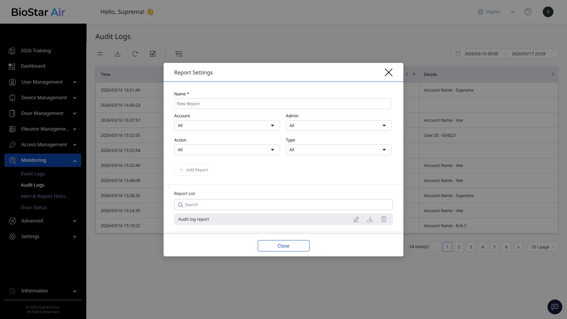 クラウド出入管理プラットフォームの主な利点の一つは、いつでもどこでもサイト活動を監視できることです。 このドキュメントでは、BioStar Airで変更ログを監視・分析する方法を説明します。