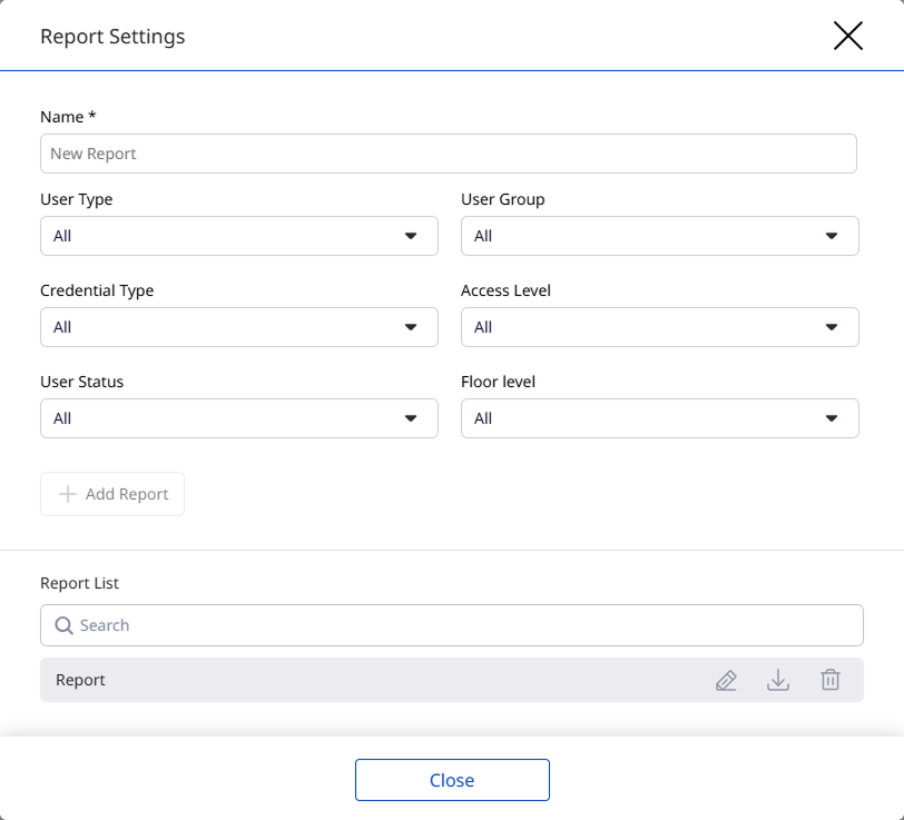 Report List에서 생성된 리포트를 검색하거나, 수정, 다운로드, 삭제할 수 있습니다.