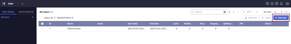 新規ユーザーを登録する方法について説明します。 ユーザーの写真、氏名、メールアドレス、電話番号などの情報を入力し、ユーザーの入退室権限と生体情報を設定できます。