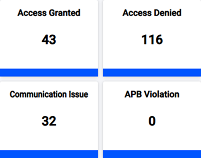 - 日ごとの認証成功, 日ごとのアクセス拒否, 日ごとの通信問題, 日ごとのAPB違反, 週ごとの 認証成功, 週ごとの アクセス拒否, 週ごとの 通信問題, 週ごとの APB違反
