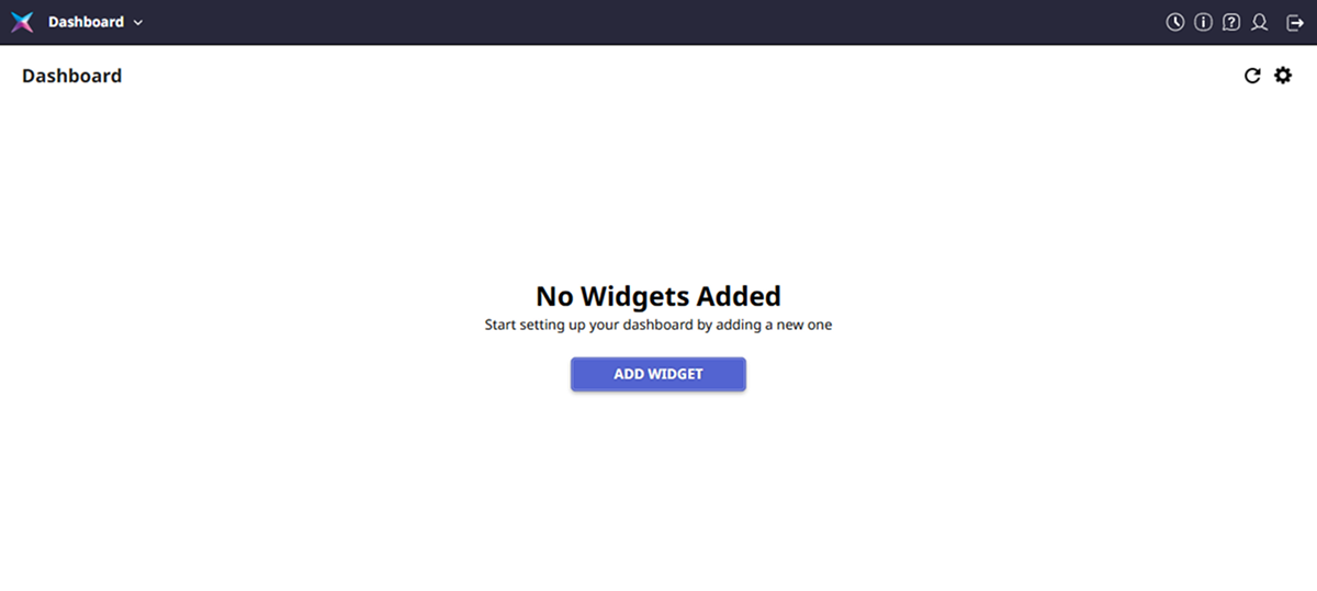 既にウィジェットが追加されている場合は、画面右上の アイコンをクリックします。 ダッシュボードの設定 モードに入ったら、ウィジェット 追加 ボタンをクリックします。