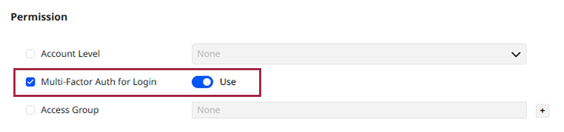 一括編集ウィンドウが表示されたら、許可 セクションで ログインのための多要素認証 オプションのチェックボックスを選択し、使用する に設定します。