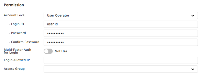 ユーザー IP アドレスを登録すると、アカウントに登録した IP 情報と一致する場合にのみ PC にログインできます。 これによりセキュリティが向上します。 許可 セクションの 許可されたIPをログイン 項目にユーザーの IP アドレスを入力します。