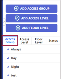 入退室レベルとユーザーグループ情報を用いてアクセスグループを設定する方法を説明します。 アクセスグループはドアの入退室権限を設定する重要な要素です。 アクセスグループを設定すると、ユーザーのドア入退室権限を管理できます。