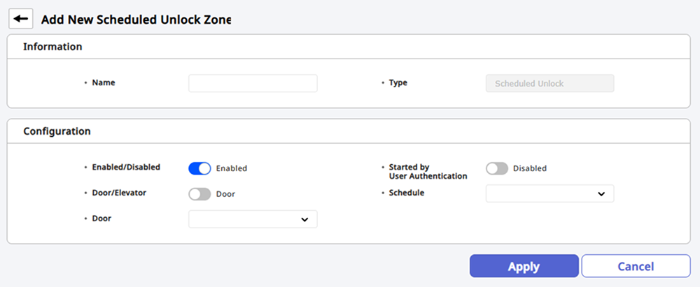 ドア/エレベーター:スケジュール開放機能を適用するドアまたはエレベーターを選択します。