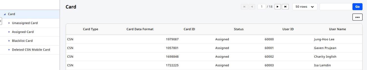カードの発行状態を確認し、Wiegandカードデータ形式を変更し、CSNモバイルカードの削除履歴を管理できます。