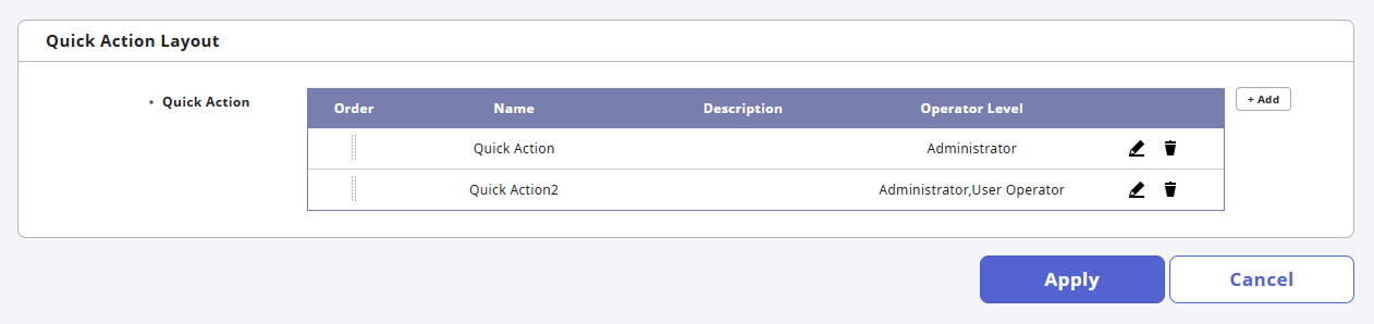 オペレーター レベル:追加するクイックアクションを実行できるオペレーター レベルを選択します。 複数選択できます。