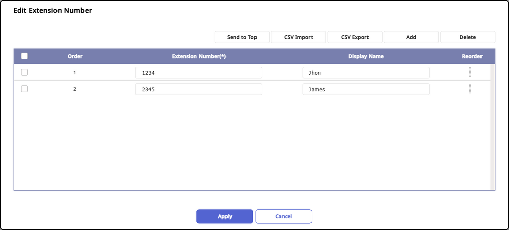 CSV インポート:内線番号を保存したCSVファイルを読み込めます。