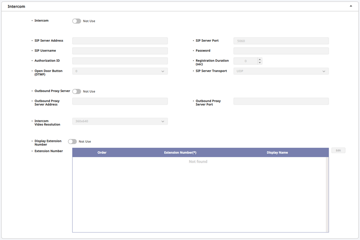 インターフォン:デバイスをIPインターホンとして使用するには有効に設定してください。