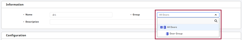 ドア情報の編集画面が表示されたら、情報 セクションの グループ オプションをクリックします。
