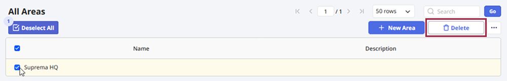 エリア一覧で削除するエリアのチェックボックスをクリックします。