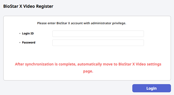 初めてアクセスする場合は BioStar X の管理者アカウントでログインする必要があります。