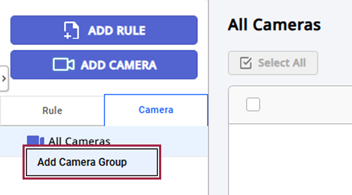 ポップアップメニューでカメラグループを追加 をクリックします。
