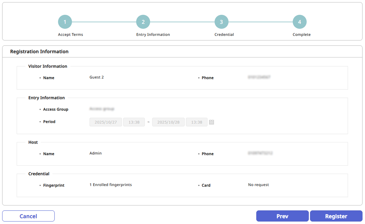 以前に指紋を登録した訪問者と一致する指紋がある場合、確認メッセージが表示されます。