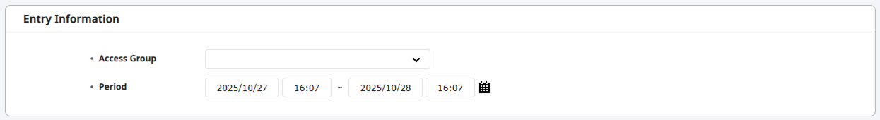 ログイン情報 セクションで入退室グループと訪問期間を設定します。