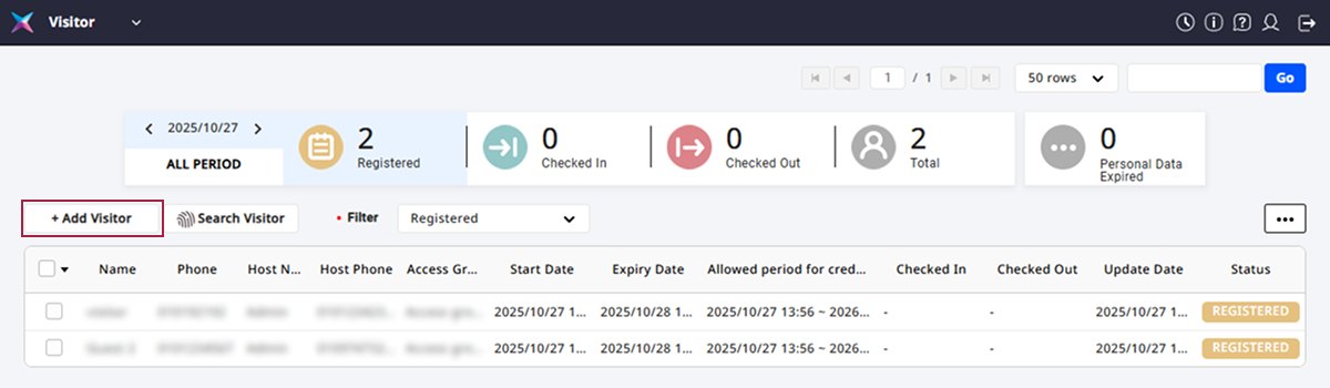 来訪申請を承認または修正できます。 管理者が直接来訪者を追加または削除することもできます。