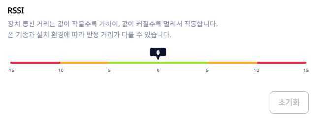 출입문 잠금을 해제하기 위해 모바일 기기와 장치가 얼마나 가까이 있어야 하는지 RSSI 값을 조정할 수 있습니다.