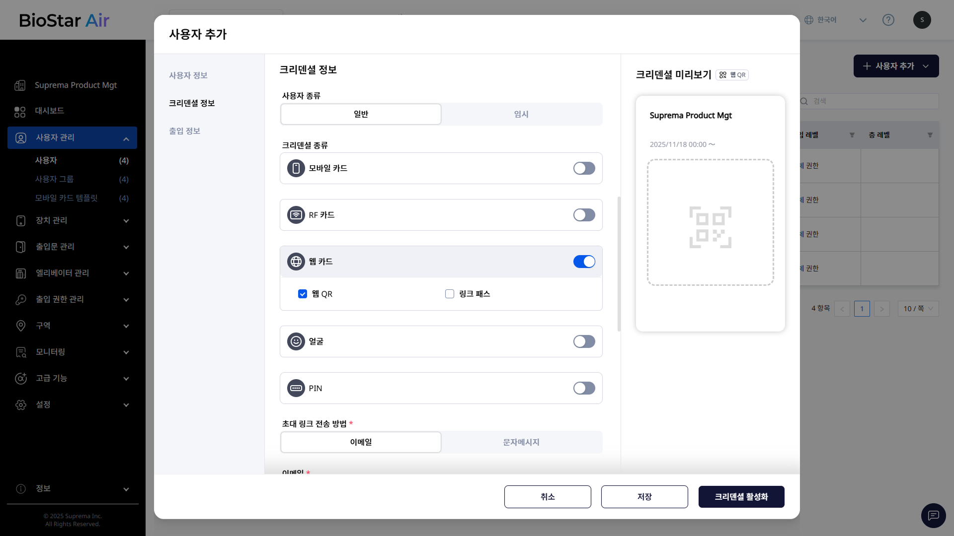 적절한 출입 레벨을 선택하고 사용자의 유효 기간을 설정하세요.