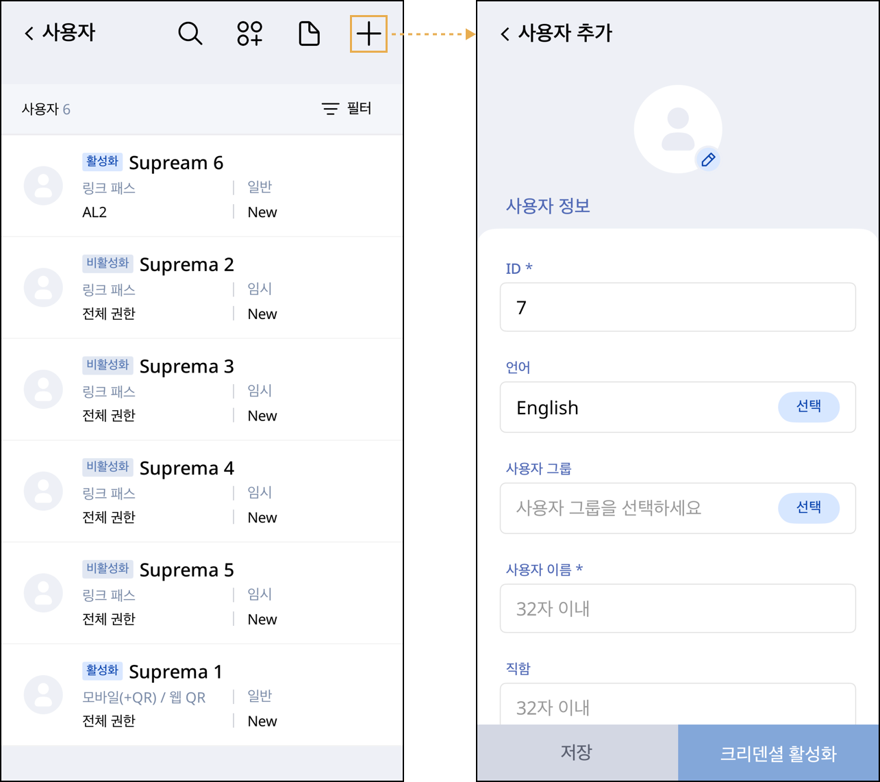 모바일 앱에서도 새로운 사용자를 추가할 수 있습니다.