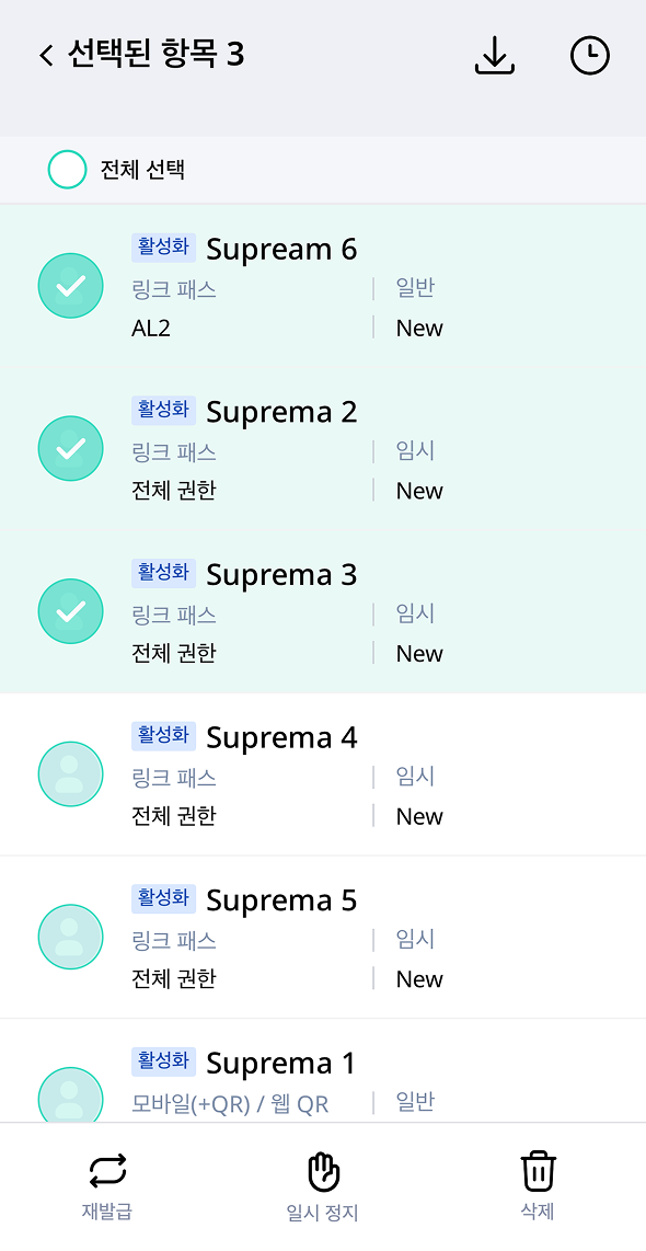 2025년 5월 이전에 BioStar Air 출입 통제 서비스를 사용하기 시작한 고객은 현재 Suprema Pass 앱으로 새로 설계된 Airfob Space 앱을 계속 사용할 수 있습니다. 두 앱 모두 동일한 기능을 제공하며 완벽하게 호환됩니다. 기존 사용자는 전환할 필요가 없으며, 모바일 인증 정보가 두 앱 모두에서 원활하게 작동합니다.