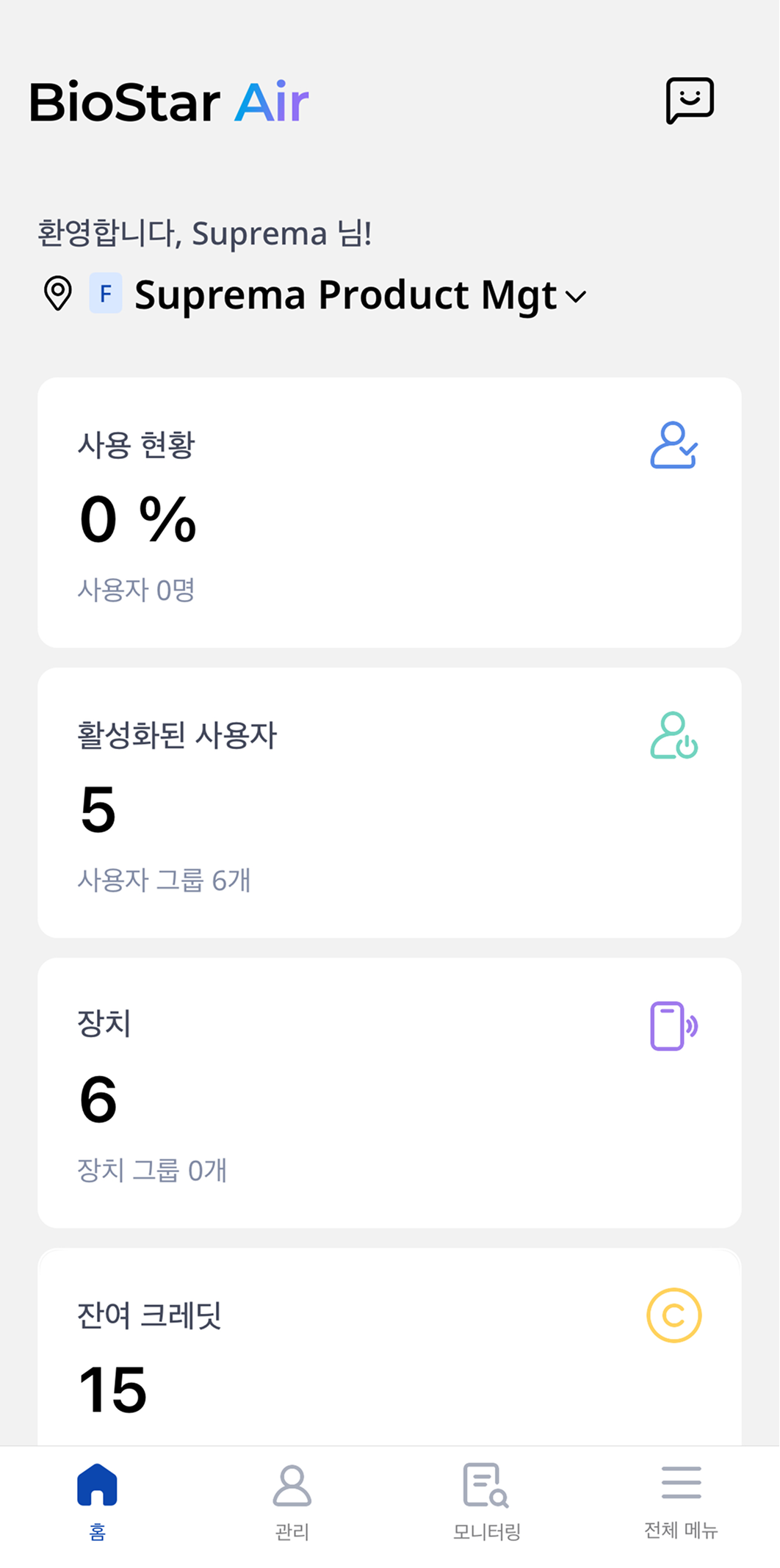 2025년 5월 이전에 BioStar Air 출입 통제 서비스를 사용하기 시작한 고객은 현재 Suprema Pass 앱으로 새로 설계된 Airfob Space 앱을 계속 사용할 수 있습니다. 두 앱 모두 동일한 기능을 제공하며 완벽하게 호환됩니다. 기존 사용자는 전환할 필요가 없으며, 모바일 인증 정보가 두 앱 모두에서 원활하게 작동합니다.